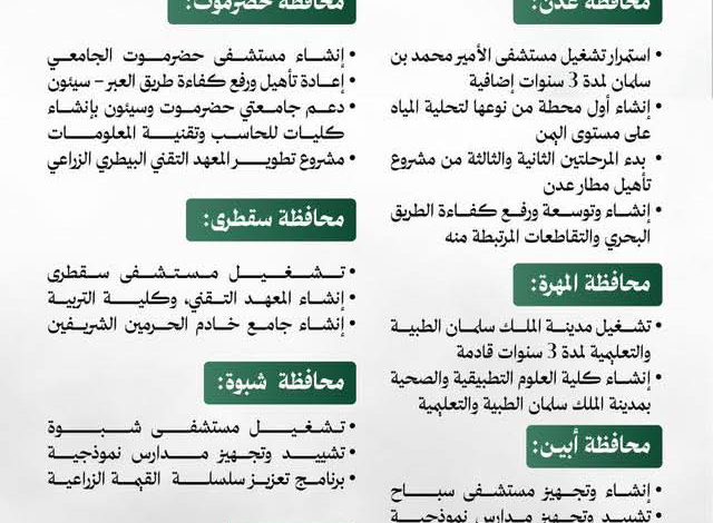 بتكلفة 1.9 مليار ريال سعودي.. البرنامج السعودي يطلق حزمة مشاريع تنموية كبرى تشمل سقطرى ومختلف المحافظات