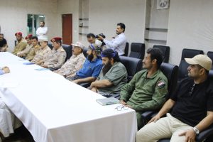 عقدت قيادة السلطة المحلية بالعاصمة المؤقتة عدن، برئاسة وزير الدولة المحافظ عبدالرحمن شيخ، اجتماعاً مشتركاً مع قيادة التحالف العربي ممثلة باللواء الركن فلاح الشهراني، وبحضور قيادات أمنية وعسكرية، لبحث ملف إخلاء المدينة من المواقع العسكرية.