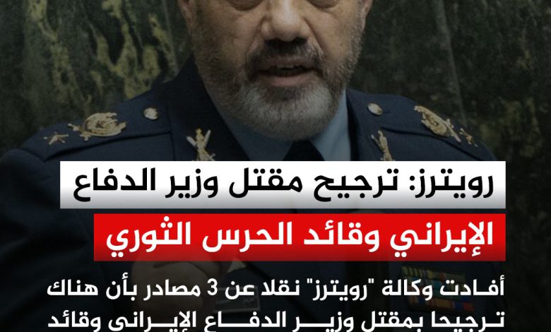 وكالة رويترز عن 3 مصادر أن هناك ترجيحات بمقتل وزير الدفاع الإيراني وقائد الحرس الثوري الإيراني