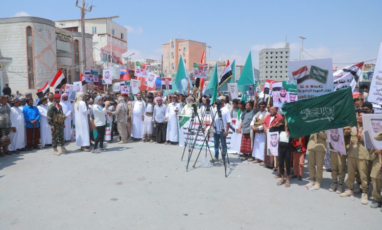 وردد الحاضرون هتافات تؤكد وقوفهم إلى جانب المملكة ودول الخليج، ورفضهم القاطع لأي محاولات لزعزعة الأمن الإقليمي، مشددين على رفضهم الزج باليمن في صراعات لا تخدم مصالح الشعب اليمني.