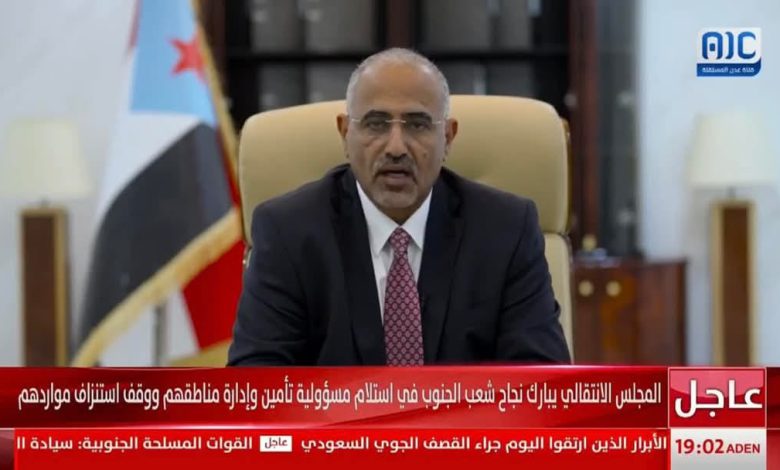 عاجل: رئيس المجلس الانتقالي الجنوبي عيدروس الزبيدي: