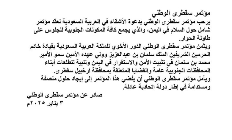 بيان مؤتمر سقطرى الوطني