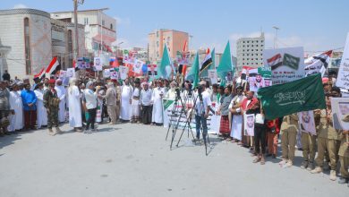 المهرة تعلن تضامنها مع السعودية وتندد بالاعتداءات الإيرانية والإسرائيلية في تظاهرة جماهيرية بالغيضة