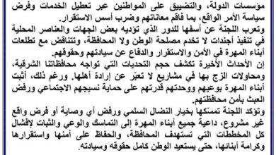 بيان : لجنة اعتصام المهرة ترفض “الأجندات الخارجية”