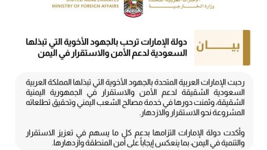 ويُشدد هذا الموقف الإماراتي على الدعم المستمر للجهود الإقليمية الهادفة إلى إيجاد حل سياسي شامل وموحد في اليمن.