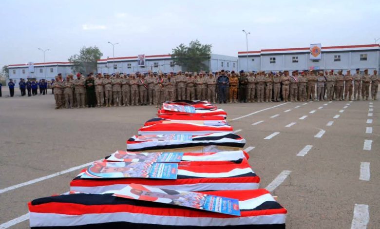 تشييع رسمي وشعبي في مأرب لشهداء المنطقة العسكرية الأولى