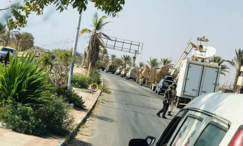 وشوهدت أرتال من المدرعات والآليات العسكرية وهي في طريقها إلى ميناء المكلا، وذلك تمهيداً لشحنها ومغادرتها الأراضي اليمنية.